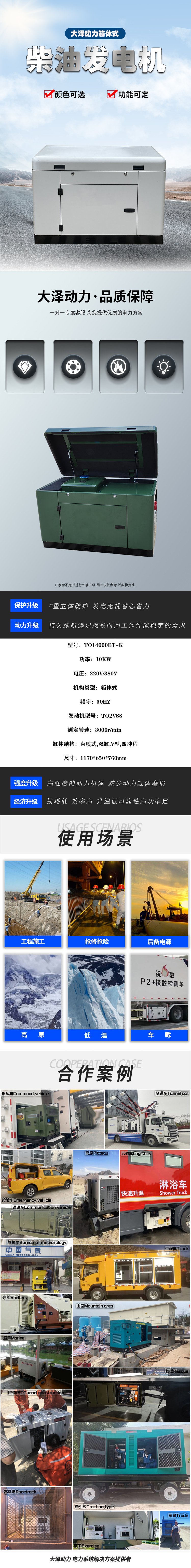 bg真人平台 10KW静音柴油发电机TO14000ET-K